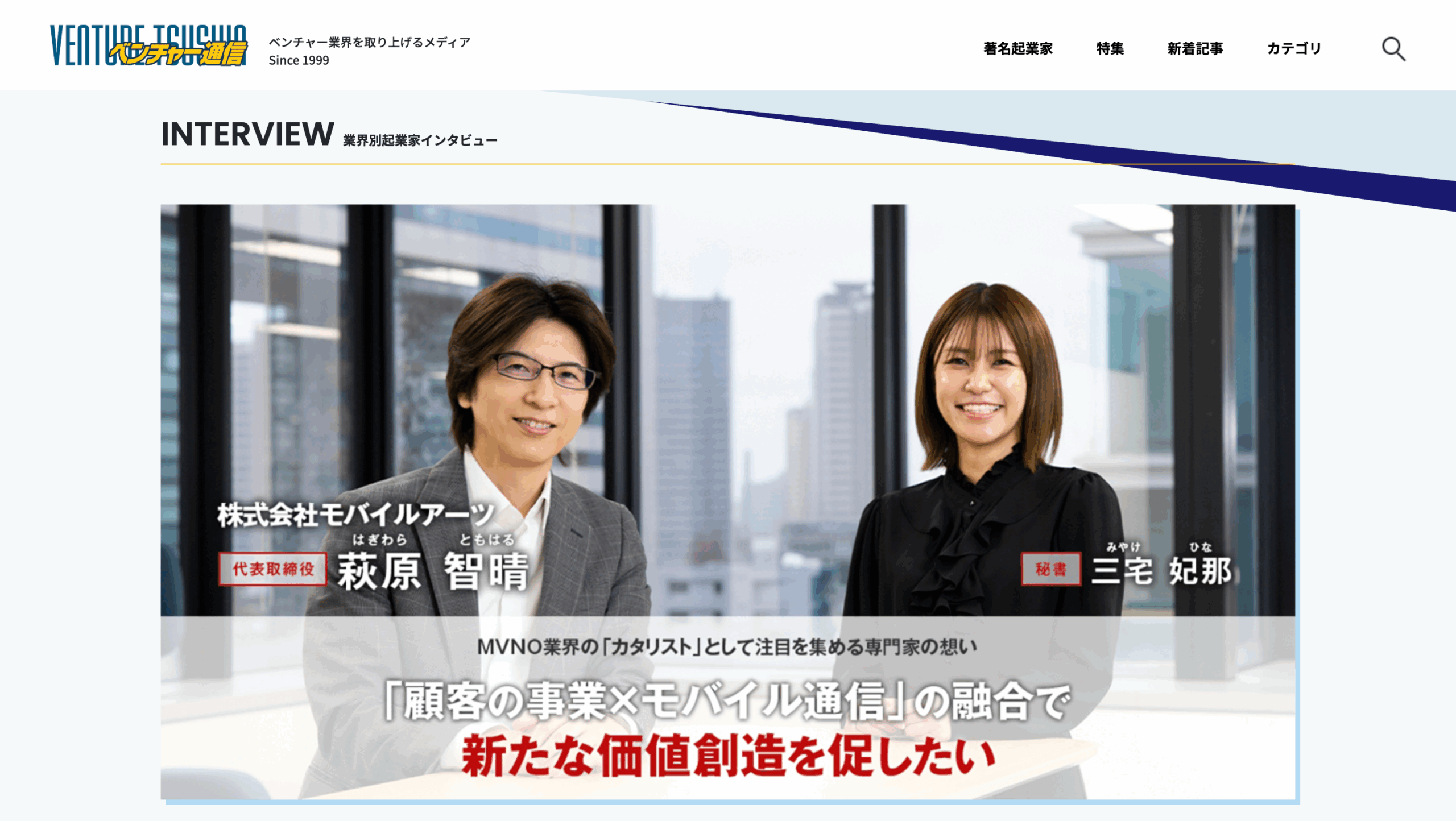 このたび、弊社代表の萩原が「ベンチャー通信」の起業家インタビューに掲載されました。